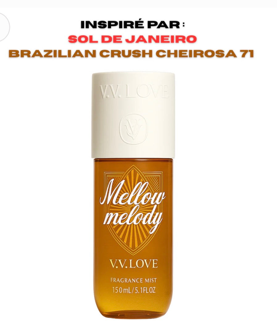 -Mellow Melody nº71 Une brume parfumée Inspiré par Sol de Janeiro Cheirosa 71 au caramel fondant et aux éclats de noix de macadamia. Une caresse sucrée, gourmande et chaleureuse.