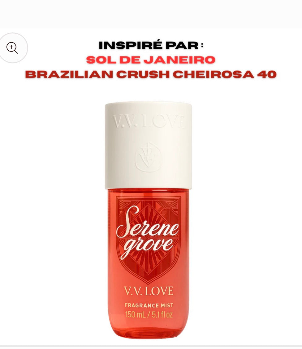 - Serene Grove Nº40 Une brume féminine Inspiré par Sol de Janeiro Cheirosa 40. Notes douces de vanille ambrée, de jasmin et de bois chaud. Une fragrance chaleureuse et réconfortante.